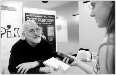 Terry Pratchett z zawodu jest dziennikarzem. Pisać może więc zawsze i wszędzie. Na pytanie