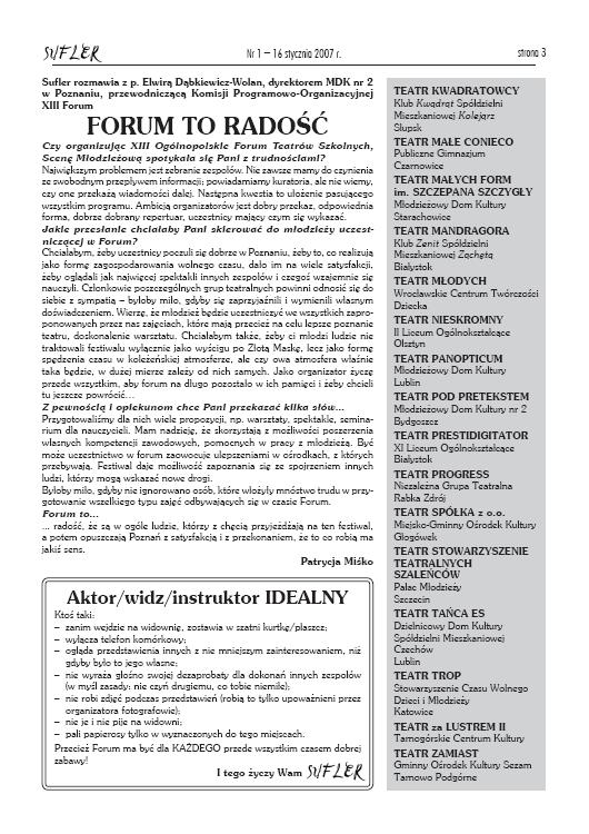 .SUFLER 2007 numer 3XIII Forum Teatrów Szkolnych